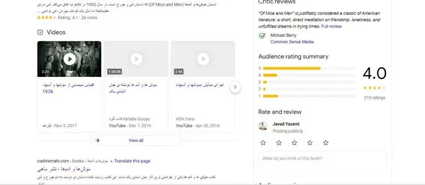 دوباره به سراغ گوگل رفتم و سرچ کردم موش ها و آدم ها رمان مورد نظرم پیدا نشد. سرچ کرم خرید اینترنتی رمان موش ها و آدم ها در صفحه اول گوگل تعدادی فروشگاه اینترنتی کتاب بودند که همه این رمان را داشتند ولی یکاسم بود که قبلا خیلی در میدان انقلاب به آن کتاب فروشی مراجعه کرده بودم. پس از اینکه فروشنده مهربان به خاطرم آمد، روی آن لینک کلیک کردم و رفتم داخل سایتشان. اول خوشحال شدم چون از همان کتاب فروشی معروف می توانستم کتاب های مد نظرم را خریداری کنم ولی یادم آمد که حال و هوای مطالعه چند صفحه کتاب در میدان انقلاب و قدم زدن و داخل فروشگاه کتاب بودند حس خودش را دارد.