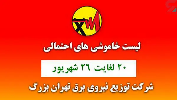 جدول خاموشی های احتمالی برق شهر تهران از تاریخ 20 لغایت 26 شهریور ا
