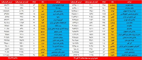 ارزش سهام عدالت امروز ۷ آبان ۹۹ / ارزش دارایکم چقدر شد؟ +جدول