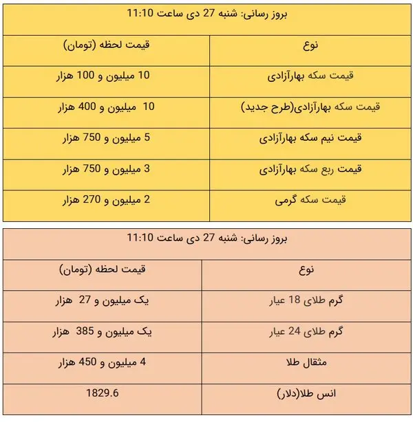 قیمت طلا و قیمت سکه، امروز ۲۷ دی ۹۹ / طلا ارزان شد + جدول