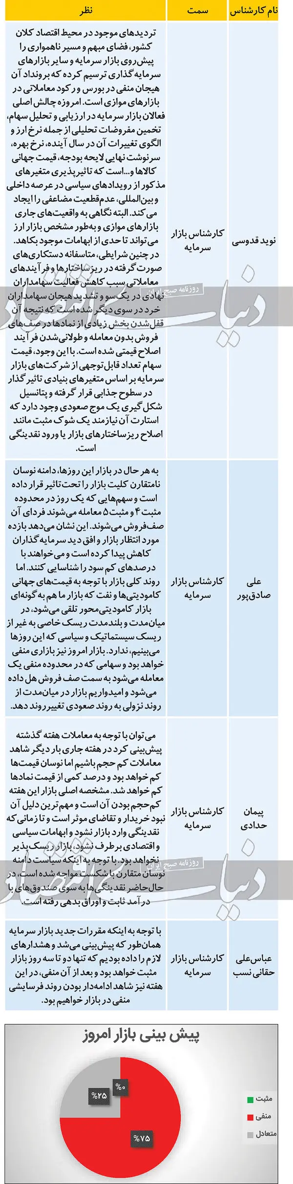 ناامیدی کارشناسان از بورس امروز (۹۹/۱۲/۰۹)