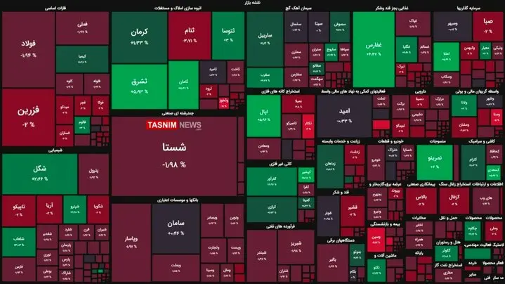 شاخص بورس قله ۱.۲ میلیون واحد را واگذار کرد + نقشه بورس