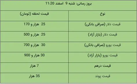 قیمت دلار و قیمت یورو در بازار آزاد، امروز ۹ اسفند ۹۹ + جدول