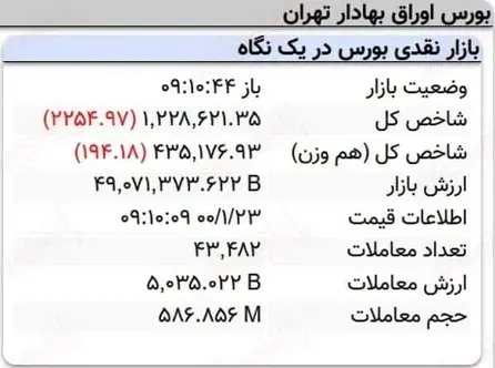 ریزش بورس در ۱۰ دقیقه آغازین معاملات امروز + جدول