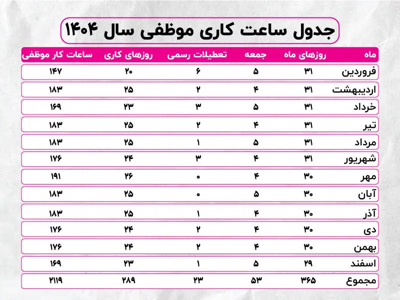 در کنار این افزایشها، تعیین ساعات موظفی دقیق و نرخ اضافه کار مناسب، به همراه سقف معافیت مالیاتی، چارچوبی منظم و شفاف را برای محاسبه و پرداخت حقوق فراهم میکند..