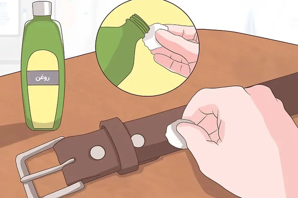 استفاده از روغن: روغن را با پارچه ای نرم و حرکات دایره ای به صورت یک لایه نازک و یکنواخت روی تمام سطح کمربند بمالید.