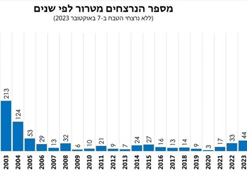 این رسانهها با انتشار دو نمودار مشخص کردند بدون احتساب تلفات (رسمی اعلام شده) طوفان الاقصی سال 2023 با به هلاکت رسیدن 44 صهیونیست بدترین سال را از این لحاظ از سال 2005 (انتفاضه دوم) پشت سر گذاشته است، این در حالی است که اگر شمار تلفات عملیات 7 اکتبر را هم به آن بیافزاییم این رقم از 1200 کشته هم فراتر رفته و رتبه اول پر تلفات ترین تاریخ رژیم صهیونیستی را به خود اختصاص میدهد.