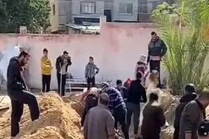 دفن دستهجمعی شهدا در محوطه بیمارستان در خان یونس+فیلم