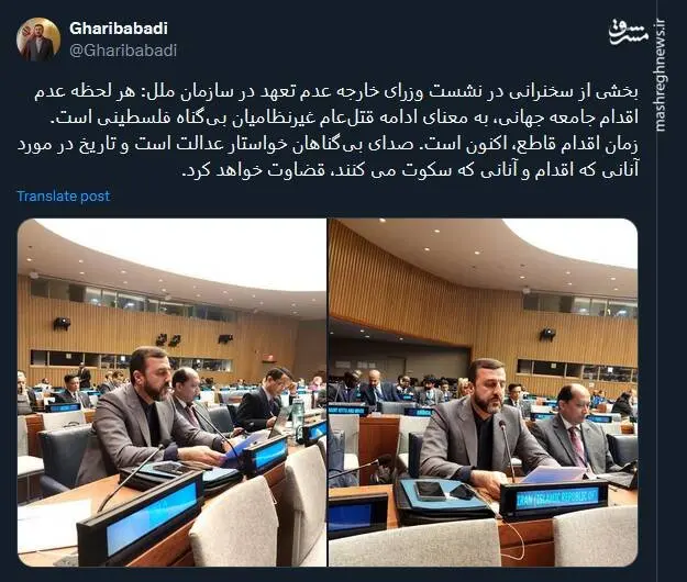 به گزارش مشرق،کاظم غریب آبادی، معاون حقوقی و بینالمللی وزارت امور خارجه توئیتری درباره سخنرانی خود در نشست وزرای خارجه عدم تعهد در سازمان ملل منتشر کرد: