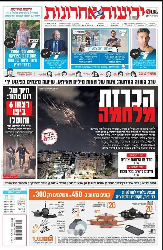 روزنامه های عبری زبان در تیتر نخست خود به حمله موشکی ایران اشاره کردند.
