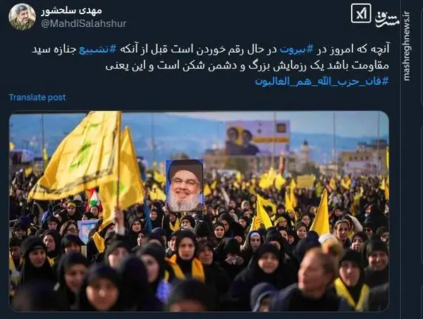 آنچه که امروز در بیروت در حال رقم خوردن است قبل از آنکه تشییع جنازه سید مقاومت باشد یک رزمایش بزرگ و دشمن شکن است و این یعنی فان حزب الله هم الغالبون