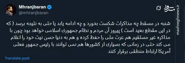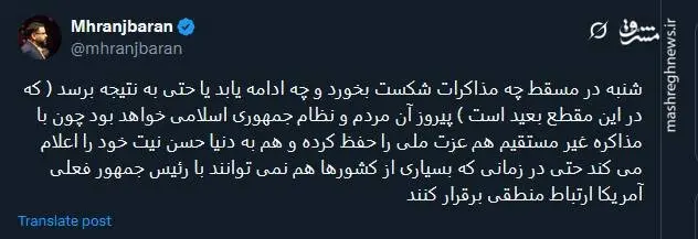 به گزارش مشرق، رنجبران در توئیتری نوشت: