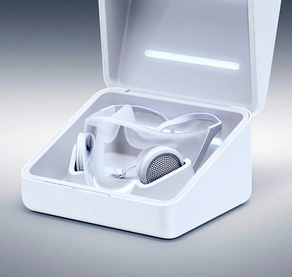 افزون بر اینها دارای یک کیف شارژ ویژه است که با یک فضای داخلی اشعه ماوراء بنفش مجهز شده است و همزمان با شارژ شدن ماسک، باکتریها و ویروسها را از بین میبرد.