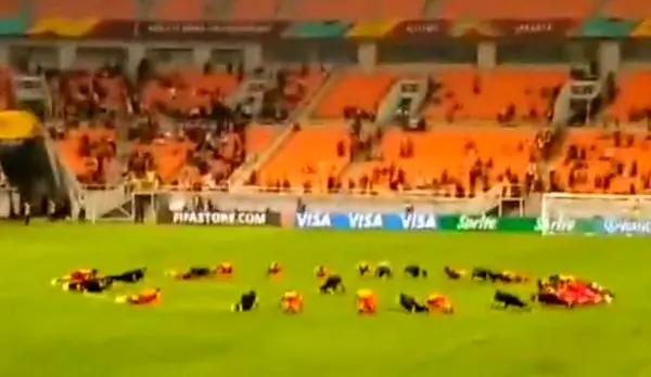 اما در شرایطی که جو ورزشگاه بزرگ اندونزی کاملا به سود ایران بود و هواداران اندونزیایی سرخ پوشان ایران را تشویق میکردند، صحنه عجیبی در میانه زمین رقم خورد؛ جایی که بازیکنان و کادر فنی تیم نوجوانان ایران شروع به شنا رفتن در دایره وسط میدان کردند؛ کاری که در نگاه اول یک کُری سنگین برای برزیل به نظر میآمد.