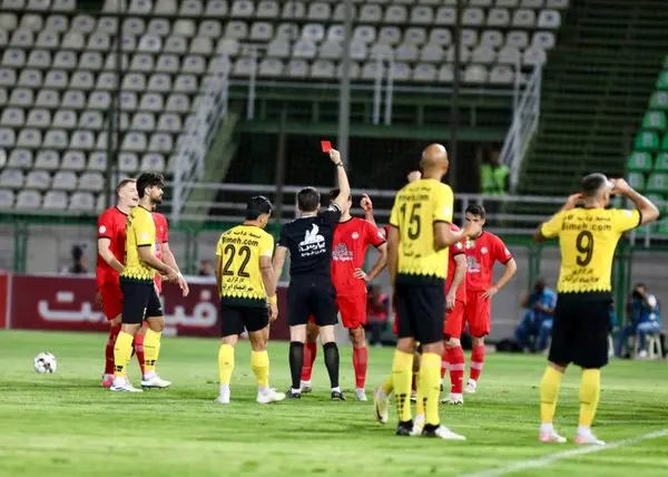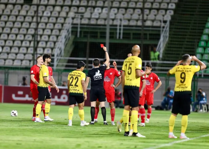 ✅ محمدحسین ترابیان: بازیکن قرمز با استوک کفش به پشت پا و آشیل بازیکن زرد ضربه میزند و مرتکب خطای شدید میشود. داور ابتدا به بازیکن کارت زرد داد، ولی با ورود VAR و بازبینی صحنه تصمیم خود را اصلاح و بازیکن خاطی را اخراج کرد.