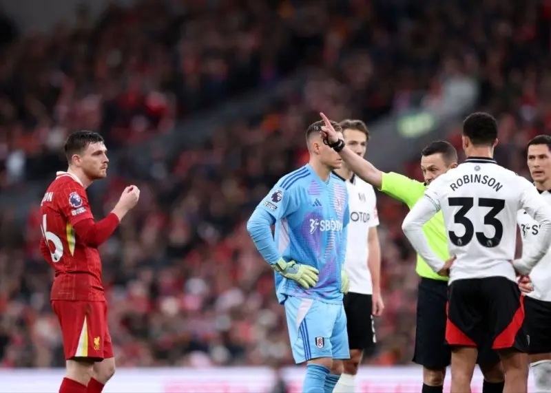 ان درو رابرتسون در بازی مقابل فولام زمینهساز گل حریف شد و چند دقیقه پس از این اشتباه، با کارت قرمز مستقیم اخراج شد.