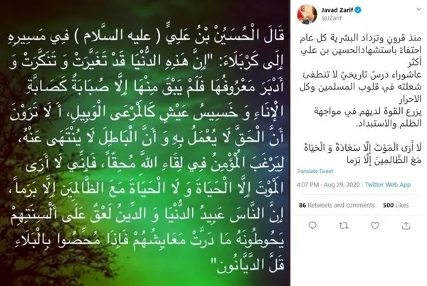 درس تاریخی عاشورا به روایت ظریف