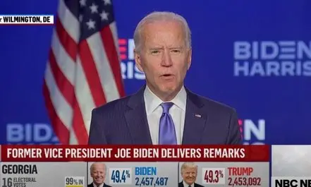 معاون اول دولت سابق آمریکا یادآور شد: در ۲۴ ساعت گذشته ما در جورجیا عقب بودیم و در این ایالت پیروز خواهیم شد، ۲۴ ساعت قبل، ما در پنسیلوانیا عقب بودیم و اکنون در حال برنده شدن پنسیلوانیا هستیم.