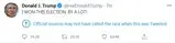 شبکه اجتماعی توئیتر نیز لحظاتی بعد ذیل این ادعای ترامپ هشدار داد که منابع رسمی احتمالاً حین ارسال این توئیت از سوی ترامپ چنین چیزی را اعلام نکرده اند.