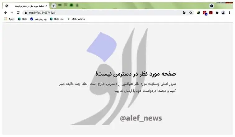 فوری/ پورتال وزارت کشور از دسترس خارج شد! + جزئیات