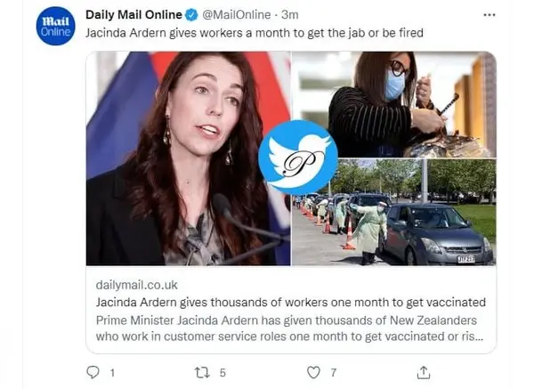 جاسیندا آردن نخست وزیر نیوزیلند به کارمندان دولت دستور داد در عرض یک ماه واکسن بزنند، در غیر این صورت اخراج خواهند شد.