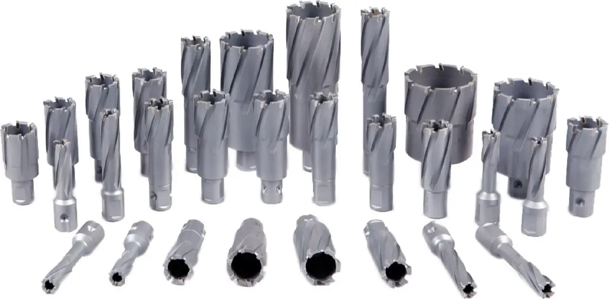 گردبرهای دریل مگنت، یا همان آنولار کاترها، بهطور ویژه برای نصب روی دریلهای پایهمگنتی طراحی شدهاند و اغلب در صنایع سنگین و کارگاههای حرفهای به کار میروند. این ابزارها برخلاف متههای معمولی، فقط لبه دایرهای قطعه را برش داده و هستهی میانی دستنخورده باقی میماند. این تفاوت در ساختار برش منجر به کاهش مصرف انرژی، افزایش سرعت سوراخکاری و دقت بالاتر میشود. گردبرهای مگنت در دو جنس اصلی عرضه میشوند: