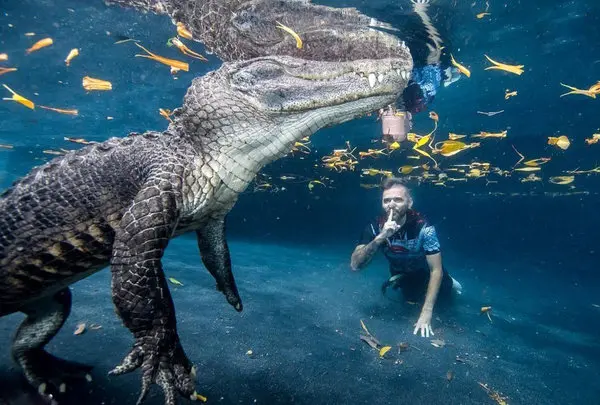 خیره کننده‌ترین عکس حیات وحش از غواصی در کنار تمساح