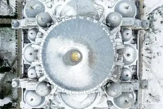 عکسی زیبا از گنبدهای مسجد سلیمانیه شهر استانبول زیر پوشش برف