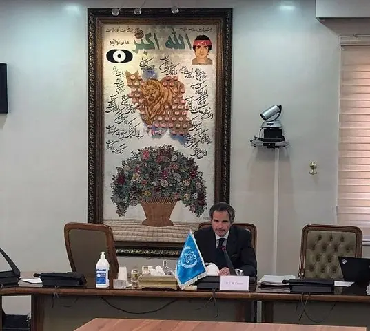 تابلو فرش خاصِ پشت سر رافائل گروسی سوژه شد+عکس