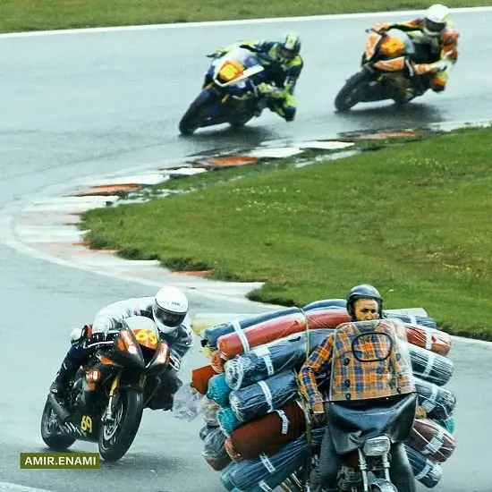 امیر انعامی، طرحهایی از پیکهای موتوری در پیست موتورسواری را در صفحه اینستاگرام خود منتشر کرد.