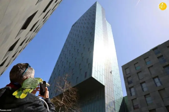تصاویر عجیب از صعود پسر جوان به آسمان خراشی در اروپا بدون تدابیر ایمنی!