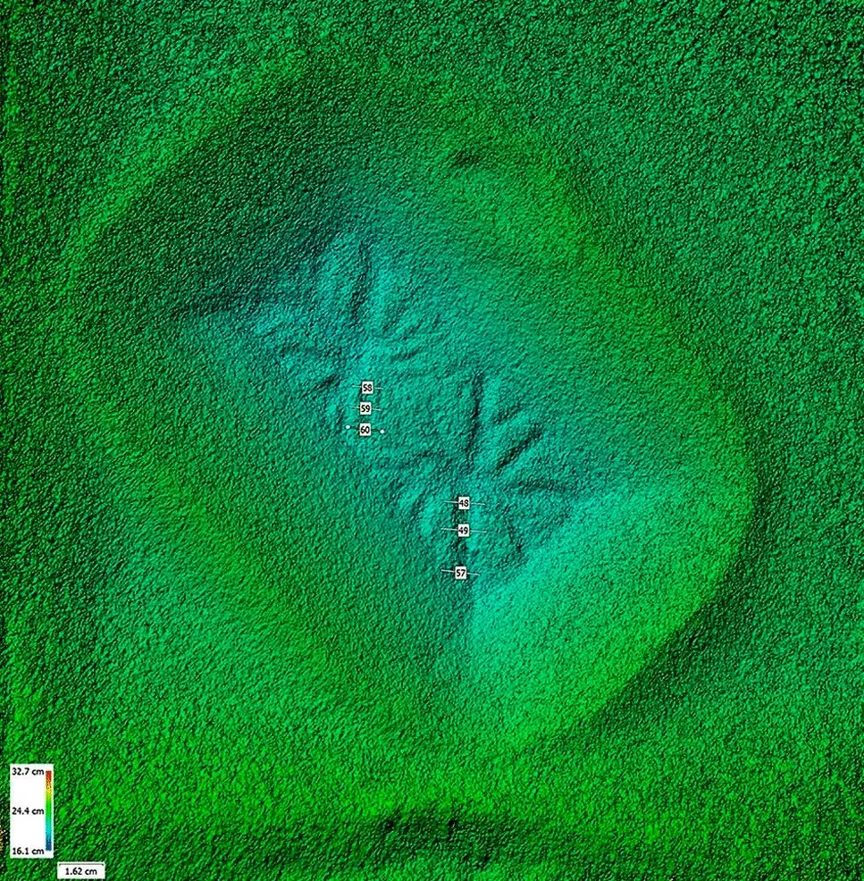 اشکال عجیب و غریب با عرض 1 کیلومتر شبیه هیچ پدیده ای در زمین نیستند. اما در مطالعه جدیدی که در 19 مارس در ژورنال Scientific Reports منتشر شد، دانشمندان با استفاده از یک تخته یخ دی اکسید کربن (یخ خشک) و دستگاهی که فضای مریخ را شبیه سازی می کند، یک نسخه کوچک از عنکبوت ها را در آزمایشگاه بازسازی کردند. وقتی یخ سرد با بستر بسیار گرم تری از رسوبات مریخ تماس پیدا کرد، بخشی از یخ بلافاصله از جامد به گاز تبدیل می شود (فرایندی به نام تصعید) و در آنجا شکاف عنکبوتی ایجاد می شود که گاز را از داخل یخ هل می دهد. تصویر زیر شکل ایجاد شده در آزمایشگاه توسط دانشمندان را نشان می دهد.