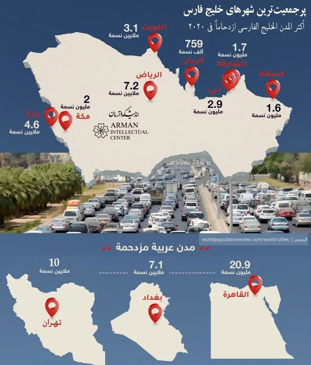 پرجمعیتترین شهرهای منطقه و خلیج فارس