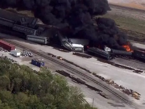 در سومین حادثه ریلی در کمتر از یک هفته در آمریکا، یک قطار حامل مواد شیمیایی خطرناک در ایالت آیووا از ریل خارج شد و آتش گرفت که باعث تخلیه نواحی اطراف تا شعاع هشت کیلومتری شد.