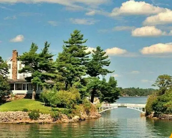 این پل مرز بین دو تا کشوره! جزیره بزرگه که خونه توشه مال کاناداست و جزیره کوچیکه که حیاط همون خونهاس مال آمریکاست!
