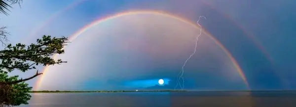 یک عکس شگفتانگیز که چندروز پیش در فلوریدا گرفته شده است، این تصویر صحنه بسیار کمیابی را نشان میدهد که ماه، رنگینکمان و رعدوبرق کنار هم هستند. منبع: خبرفوری