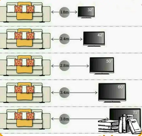 فاصله استاندارد از تلویزیون با توجه به سایز صفحه