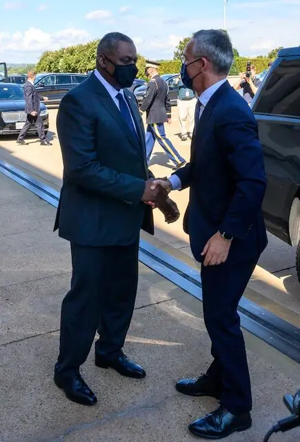 وزیر دفاع آمریکا همچنین از دبیرکل ناتو بابت کمک به پیشرو بودن و هدایتگری این ائتلاف در زمان خروج نیروهای آمریکایی از افغانستان و تخلیه از کابل در ماه گذشته میلادی قدردانی کرد و به این نکته اشاره کرد که پس از حمله ۲۰۰۱ القاعده به آمریکا، ناتو قانون پنجم معاهده این ائتلاف نظامی را اجرایی کرد که مربوط به دفاع از کشورهای عضو در زمان وقوع حمله است.