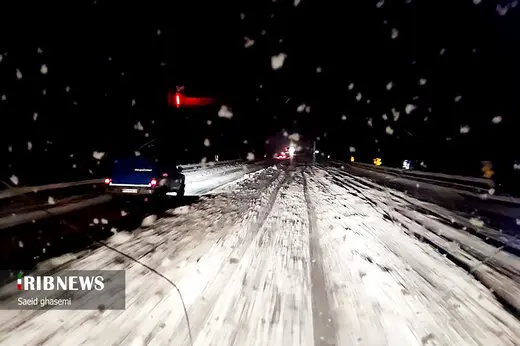 تصاویری از بارش برف در جاده چالوس محدوده کندوان و برف روبی و نمک پاشی عوامل راهداری را مشاهده مینمایید.