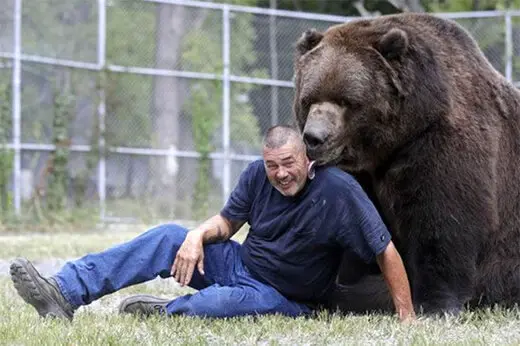 ببینید سرشاخ شدن خرس غول پیکر با مربیاش