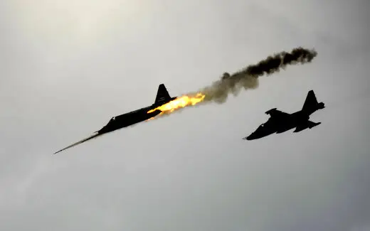 لحظه شکار جنگنده سوخو ۲۵ روسیه با موشک استینگر