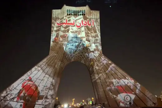 تصویرنمایی سه بعدی «آبادان تسلیت» بر روی برج آزادی، در پی همدردی با مردم آبادان را ببینید. منبع: ایرنا