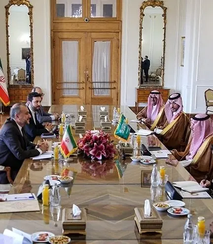 فیصل بن فرحان وزیر امور خارجه عربستان نیز در این دیدار با تشکر از دعوت رسمی بهعمل آمده و استقبال گرم طرف ایرانی، گفتوگوها و مشورتهای امروز را در استمرار گفتوگوها و توافقات مشترک دو کشور در ماههای اخیر، زمینهساز خیر و برکت برای دو ملت دانست و بر عزم کشورش برای توسعه روابط با جمهوری اسلامی ایران و گشایش صفحهای جدید در روابط دو کشور تاکید کرد.