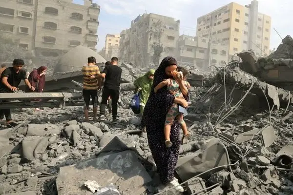 لحظه نجات یک دختربچه از زیر آوار خانه ویران شده در غزه