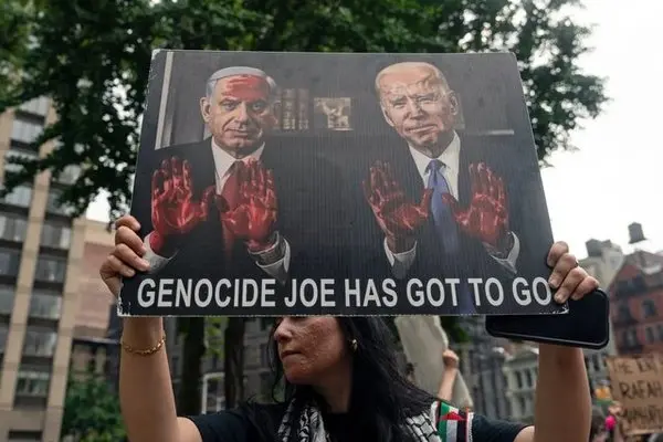 به گزارش نامهنیوز، این معترضان به محل برگزاری این برنامه در سالن «همرشتاین» در نزدیکی خیابان هشتم در مرکز شهر نیویورک وارد شدند و ضمن تظاهرات خود پرچمهای فلسطین و پلاکاردهایی با مضمون درخواست کنارهگیری بایدن را به نمایش گذاشتند.