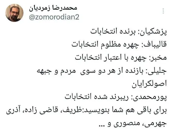 پزشکیان برنده انتخابات، پورمحمدی ریبرنده شده انتخابات!