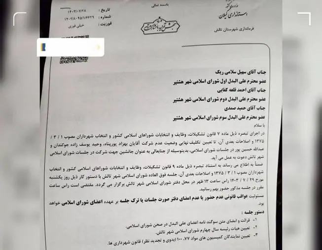 عزل ۳ عضو شورایشهر تالش + جزئیات