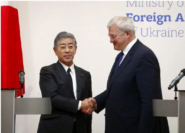 وزرای امور خارجه ژاپن و اوکراین توافق کردند گفتوگوهای امنیتی در بالاترین سطح ممکن با حضور مقامات ارشد دفاعی و خارجه دو کشور به منظور تقویت همکاریهای اطلاعاتی و دفاعی آغاز شود.