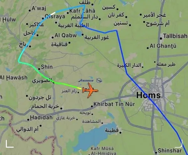 وب سایت فلایت رادار که در زمینه ردیابی هواپیماها فعالیت میکند، ادعا کرد: هواپیمای حامل بشار اسد به سمت شمال غربی پرواز کرد، سپس در نزدیکی حمص پیچید و ناپدید شد