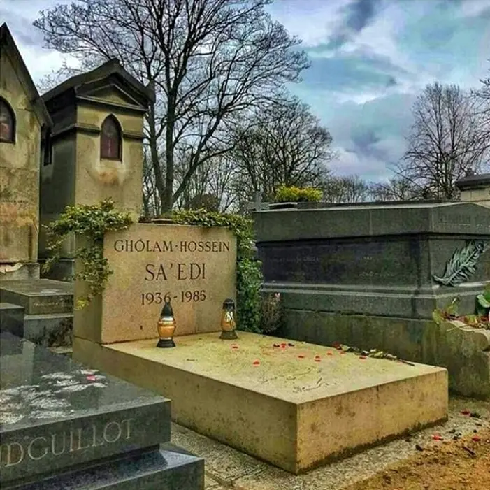 غلامحسین ساعدی با نام مستعار گوهر مراد که سال ۱۳۶۴ شمسی در پاریس درگذشت در قبرستان معروف پرلاشز در این شهر به خاک سپرده شده است. قبر او فاصله چندانی با قبر صادق هدایت، دیگر نویسنده ایرانی در این قبرستان ندارد.